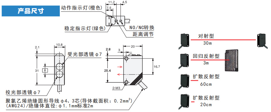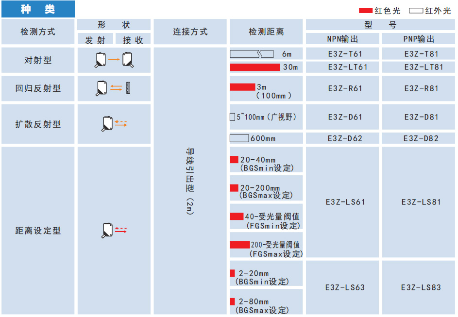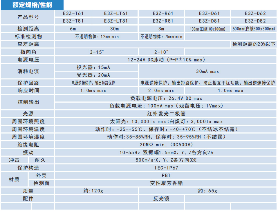 E3Z系列內(nèi)置小型放大器型光電傳感器