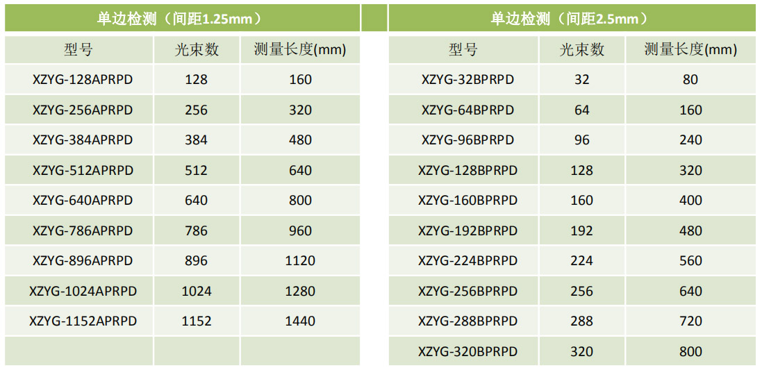 每套系統(tǒng)包括一對(duì)高分辨率光幕和兩根信號(hào)電纜線,輸出方式:RS485通訊、模擬量、開(kāi)關(guān)量。