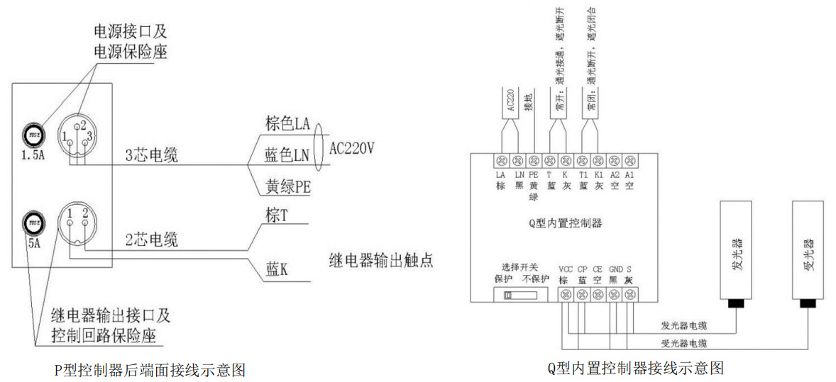 通光時(shí)繼電器輸出常閉,遮光時(shí)繼電器輸出常開(kāi)(出廠時(shí)設(shè)定為默認(rèn);