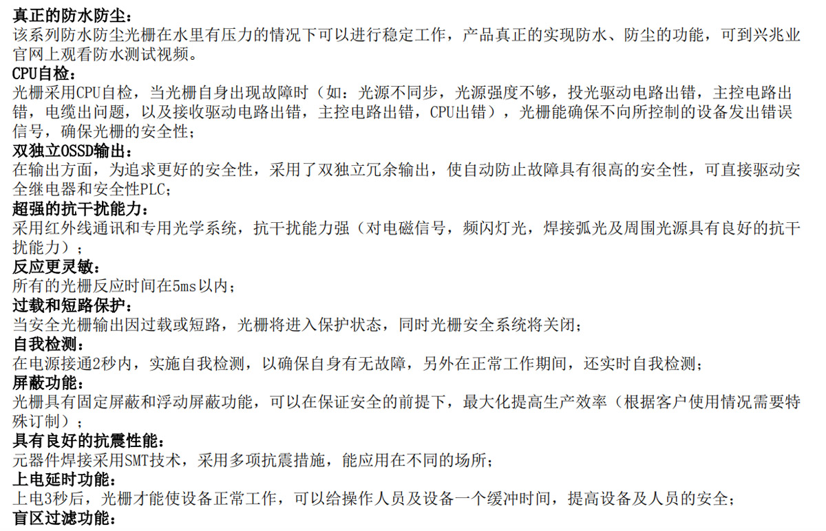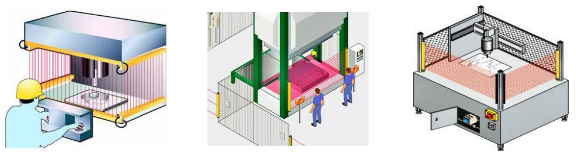 自動化設(shè)備、鍛壓機(jī)床、剪切機(jī)器、液壓機(jī)械、機(jī)器人、工業(yè)機(jī)械手、包裝設(shè)備、生產(chǎn)流水線、立體車庫及其它自動化設(shè)備,也可用于多面區(qū)域保護(hù)或防盜等。