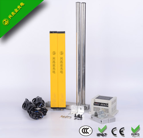1.要采辦安全光柵首先要了解我們的安全光柵包含哪些,一般正常而言,一套安全光柵包含:安全光柵發(fā)光器、測量光幕受光器、控制器、鋼管支架。